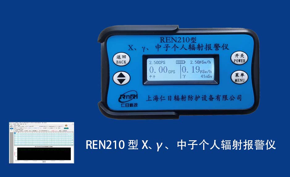 REN210型X、γ、中子個(gè)人輻射報(bào)警儀內(nèi)置SiPM和鋰玻璃晶體組成中子探測(cè)器儀器,采用反照率方式探測(cè)中子射線,同時(shí)也能探測(cè)X、γ射線。因此它可同事監(jiān)檢測(cè)X、γ、中子三種射線。能顯示工作場(chǎng)所的劑量當(dāng)量率和累積劑量,更換電池時(shí),日期及累積數(shù)據(jù)能永久保存。可選配RenRiPersonal個(gè)人劑量管理軟件,該軟件可存儲(chǔ)多個(gè)人的歷史數(shù)據(jù),能記錄日累積、月累積、年累積、輻照時(shí)長(zhǎng)、計(jì)算平均劑量率、扣除或不扣除本底輻射,且以文字和圖譜的方式展現(xiàn)數(shù)據(jù)。廣泛應(yīng)用于環(huán)保、化工、水泥、煤礦、土木工程、石油、醫(yī)院、疾控、進(jìn)出口商檢、核電、加速器、機(jī)場(chǎng)、中子源庫(kù)和其他安檢、邊境控制海關(guān)檢測(cè)等